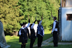 K večeři nás čekala špagetová nálož podle tajné receptury hospodářky Janči a kuchtíka Máry, po které se jednotlivé družiny začaly chystat na přijetí u jejich veličenstva. Králi a královně se nejprve slavnostně poklonily a oznámily svůj vznešený původ a název. Král je oficiálně zlatým mečem pasoval na mušketýry a královna darovala slavnostní glejt s pozvánkou na akci Tour de Putyka, dále krabičku s cennými kartami a také mušketýrský háv A.K.A. táborová trička.