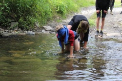 Hned po budíčku jsme se vrhli na lehký úklid tábora, neboť pobyt dětí v táboře začínal být znát. Hned po této rychloakci ale začaly pro mnohé oddíly pořádné výzvy. Osmý oddíl zasvětil celé dopoledne hře Triffidi, kdy byli po čtyřčlenných skupinkách s jedním vidomým vysíláni na trať plnou úkolů. Od zapálení ohně, sestrojení rovnoramenného trojúhelníku z vlastních těl až po přelezení potoka po čtyřech. Oddíly 9, 10 a 11 spolu zaběhli dopolední závod, který byl završen lovením kačenek pusou. Akční spacákový zápas zažil i šestý oddíl na nástupišti.