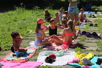 Dnes předpověď konečně ukázala sanšájn, a proto jsme odpoledne (a někteří i dopoledne) svlažili svá těla v našem vyhlášeném pumpamparadním akváči. Dopoledne jsme strávili v oddílu. Osmička hrála strategickou hru RUR. Softbal hrály oddíly numero čtyřka a pětka. Šestý oddíl batikoval netradičním způsobem – pomocí vodních pistolek po sobě cákaly barvitou vodu. Dámy z trojky a pětky batikovaly klasickým způsobem. Desítka trénovala trpělivost a kooperaci, sedmička hrála propracovanou hru na čaroděje. V kuchyni to dneska žilo o poznání více, neboť si vedoucí z osmého oddílu domluvili odměnu za službu pár dní zpět, domácí langoše. Naše interní zdroje, které měly tu čest ochutnat, mohou říct, že byly přímo luxusní. Služebním oddílem byl pro dnešek oddíl číslo devět, který se o nás postaral přímo královsky a vyzdobil jídelnu čerstvými květy.