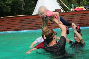 Díky slunnému počasí jsme se mohli také smočit po poledňáku v bazénku. Po koupaní přišel ultra náročný skorozávěr celotáborové hry. Po skvělém zážitku z loňských psích spřežení se konal podobný závod vozatajů. Cílem bylo v jednotlivých družinkách sestrojit lidský kočár pro jednoho jezdce a projet poměrně náročnou dvoukolovou trasu. Probíhali skrz potok, bazén, bombové pole nebo křoviny. Za dokončení závodu byly družiny odměněny nanukovým dortem.